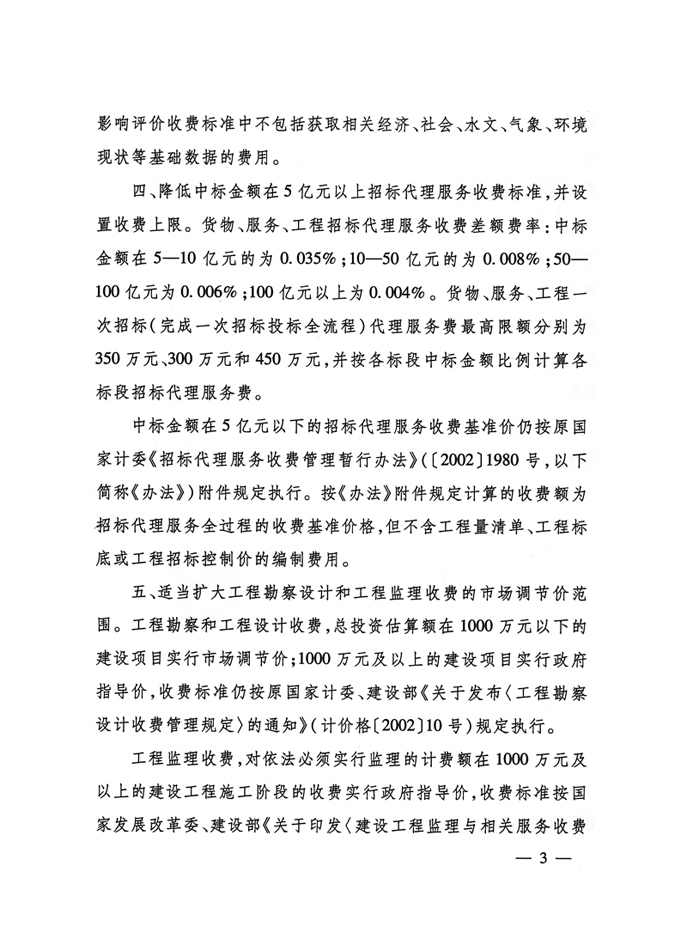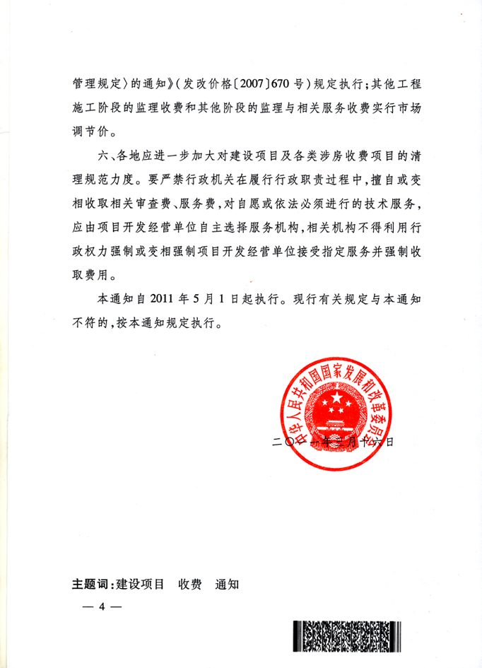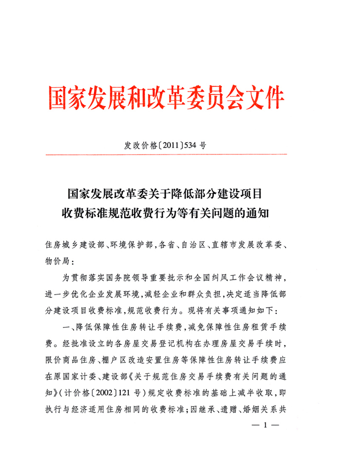 关于规范建设项目收费标准的通知 发改价格[2011]534号